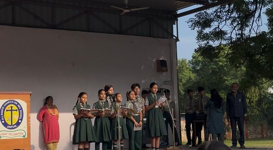 कक्षा IX-B के विद्यार्थियों ने प्रभु प्रार्थना और भारतीय प्रतिज्ञा को हिन्दी में प्रस्तुत किया। साथ ही समाचार व आज का विचार भी विद्यार्थियों द्वारा हिन्दी में ही साझा किए गए।