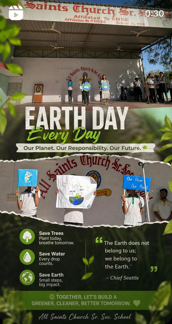 Our school proudly celebrated Earth Day with great enthusiasm and a strong message of environmental awareness. The day began with a special assembly dedicated to the significance of Earth Day, where students shared inspiring thoughts on saving our planet. A pledge was also taken by all students to protect and preserve the Earth and contribute towards a greener future. The assembly was further enriched with a melodious song based on the theme of Earth.