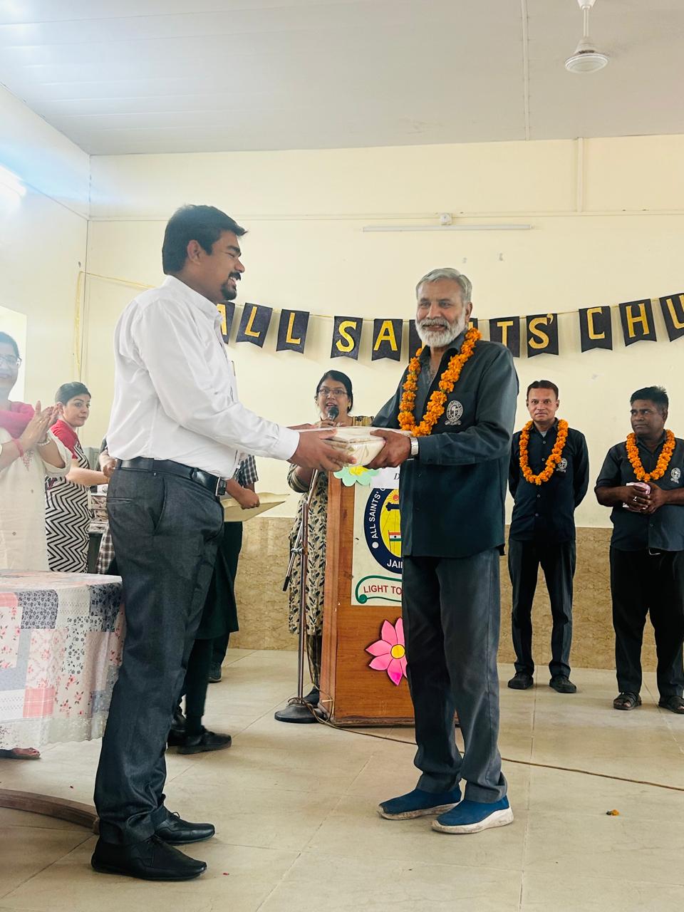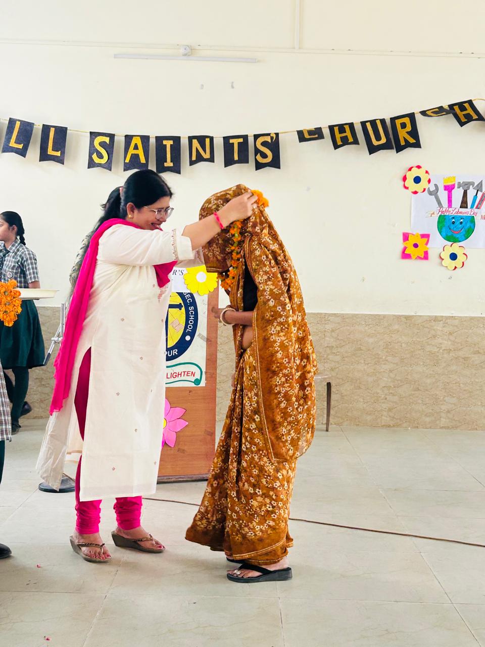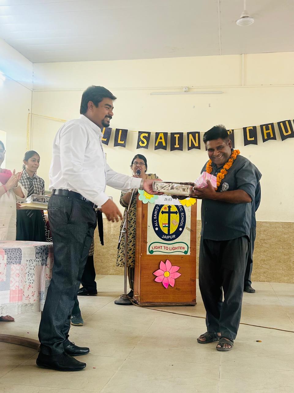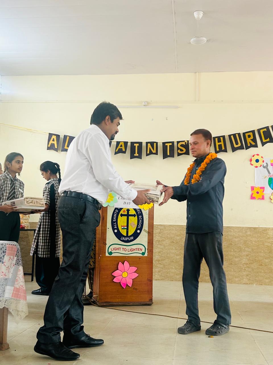 Labour Day was celebrated with great respect and enthusiasm at All Saints’ Church Senior Secondary School. The event began with a warm welcome of all fourth-class employees, who were greeted with garlands by Chairman Rev. Sandeep Samuel Hiskiel and Principal Ma’am.