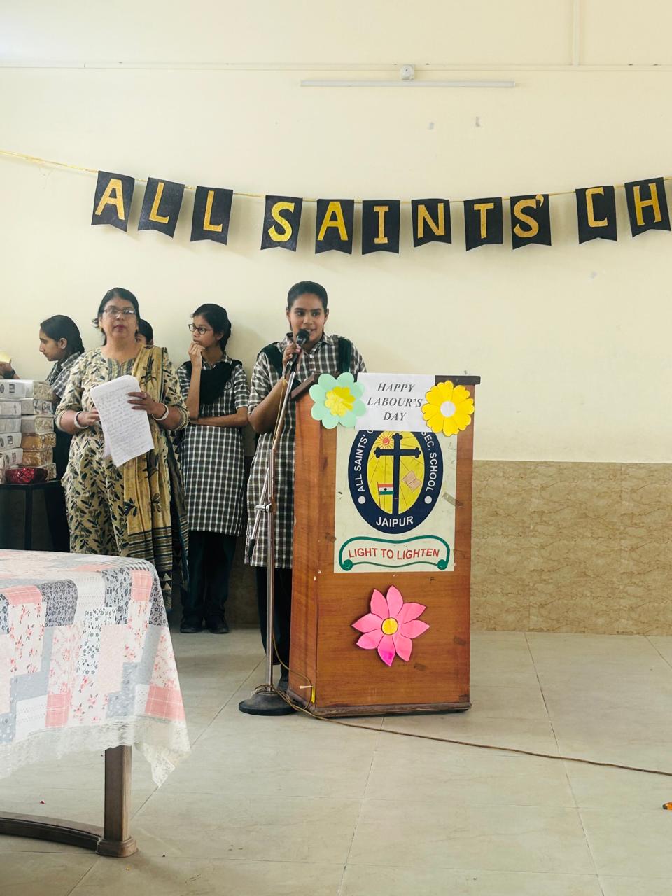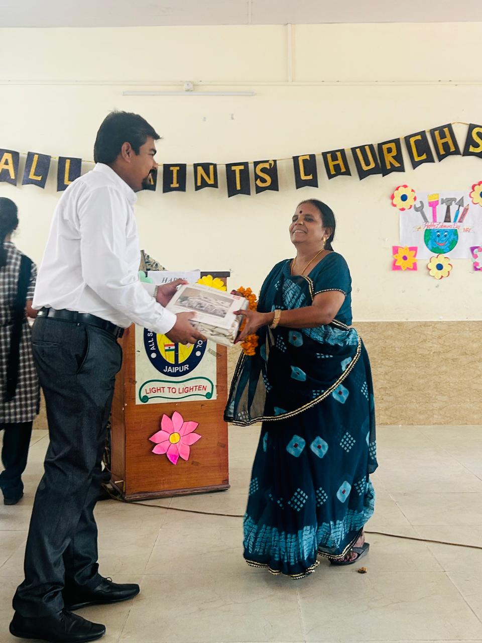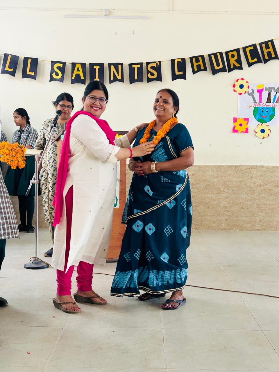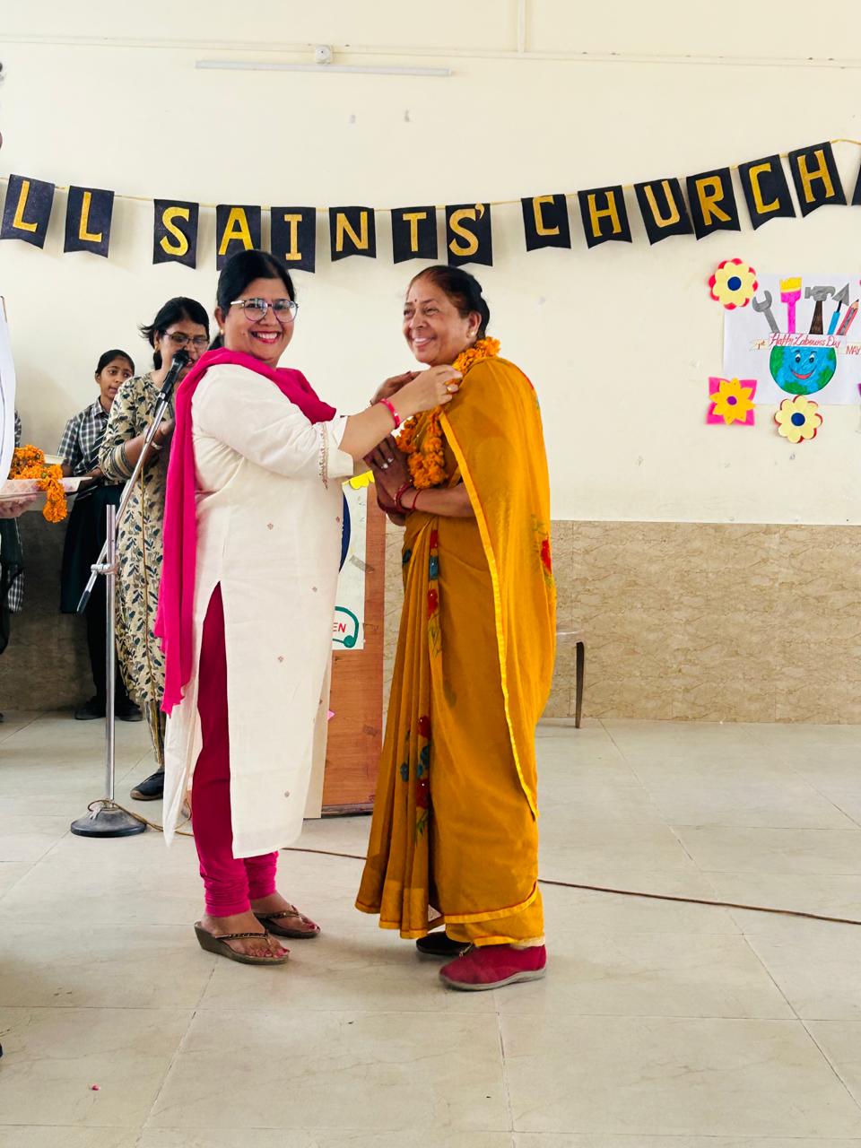 Labour Day was celebrated with great respect and enthusiasm at All Saints’ Church Senior Secondary School. The event began with a warm welcome of all fourth-class employees, who were greeted with garlands by Chairman Rev. Sandeep Samuel Hiskiel and Principal Ma’am.